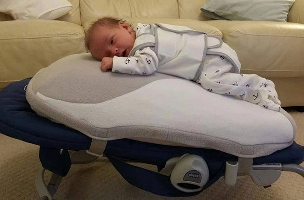 After welcoming her second child, Harry, she came up with the idea for the product because he struggled with colic and reflux, and therefore needed to be held most of the day, which left her no time to take care of everything else.