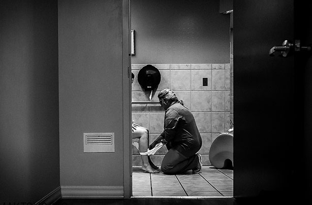 Photographer's heartwarming picture of a new mum and her nurse in the bathroom goes viral