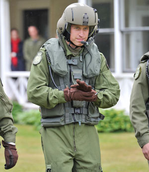 Prince William dons his fatigues as he prepares to do a helicopter water-landing for the crowds.