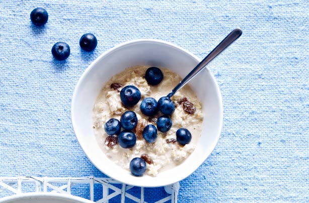 How to make: Warm the blueberries in a pan and serve with the fat-free yoghurt and oats.