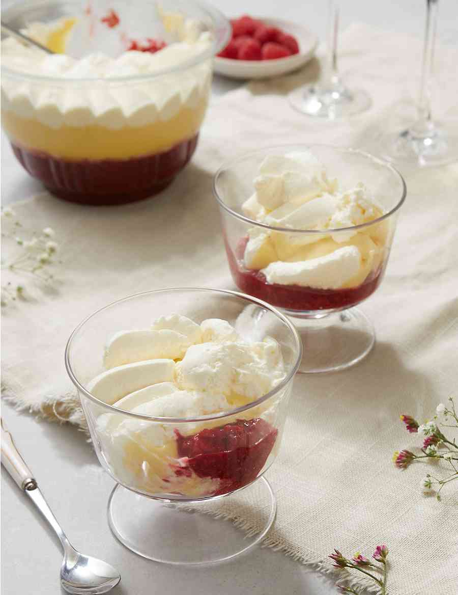 The trifle is packed with the highest quality ingredients – think free range eggs, Madagascan vanilla-infused custard and fruit compote made up of 80 per cent whole strawberries and raspberries.