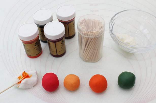 Colour your paste into various Autumn colours. If you have some, rub a touch of Trex into your hands before colouring, this will act as a barrier and you’ll find it easier to get the colour off your hands.