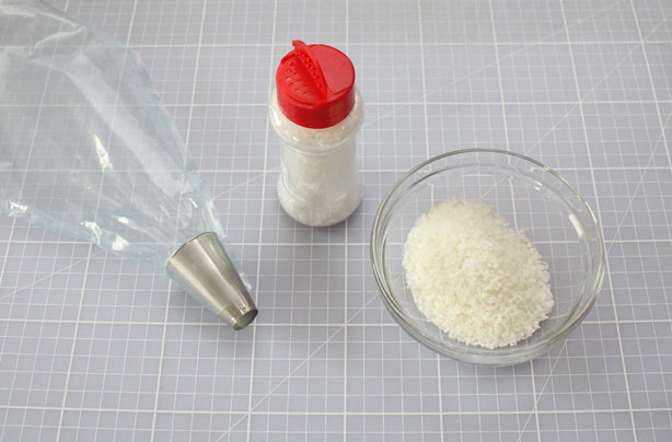 The next day, bake your cupcakes. Leave to cool. Make your batch of buttercream and add a Wilton 2E Plain piping nozzle to a piping bag. Pop the coconut and some magic sparkles into a small dish.