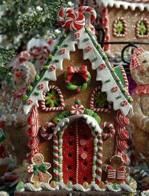 A porch? A balcony? We've never seen such an extravagent gingerbread house. We could just imagine little gingerbread people living there - what a splendid life they'd have!