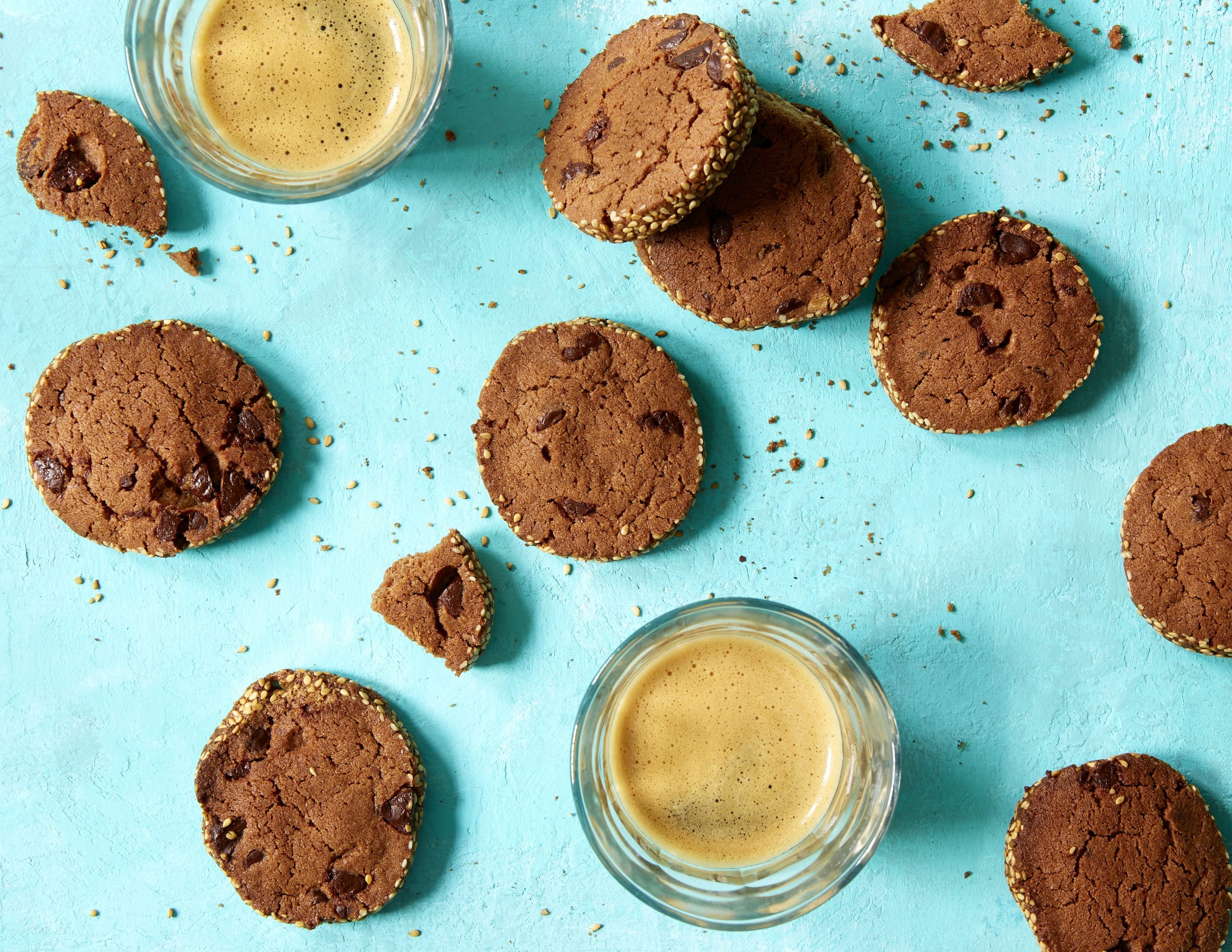 These tahini cookies combine rich dark chocolate chips with the nutty flavour of tahini. This creates treats that have a complex and well-balanced flavour.