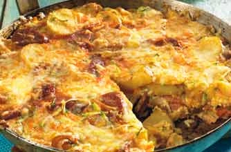 A meal in a pan - a traditional Spanish-style omelette filled with Manchego cheese and spicy chorizo