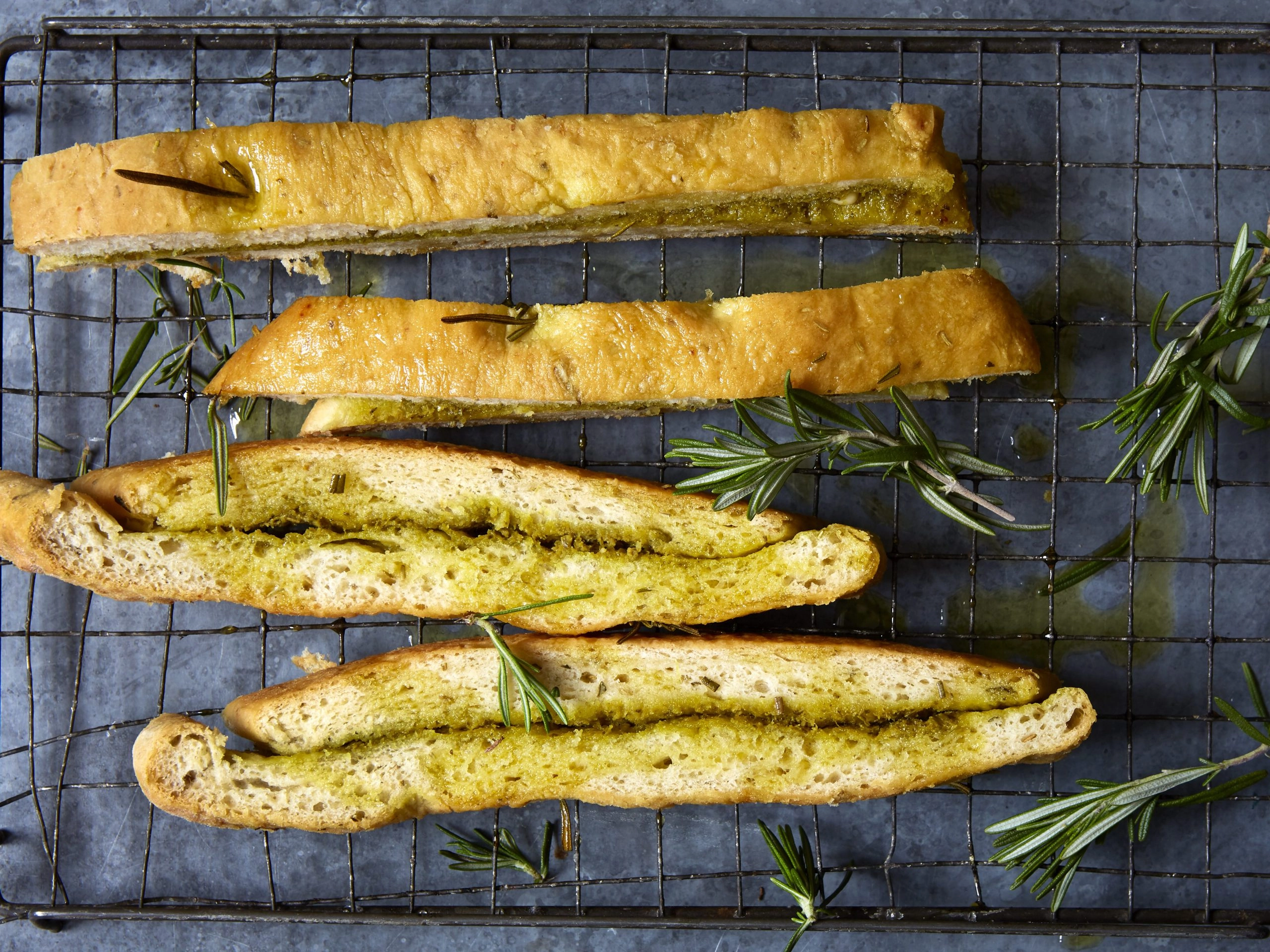 - Heat the oven to 200C. Lightly dimple the top of the dough with your oiled fingertips, then drizzle with a little olive oil, sprinkle over the sea salt and the reserved rosemary sprigs. Bake the bread for 30 mins until golden, then leave to cool a little. Cut into pieces and serve with olive oil and balsamic vinegar.