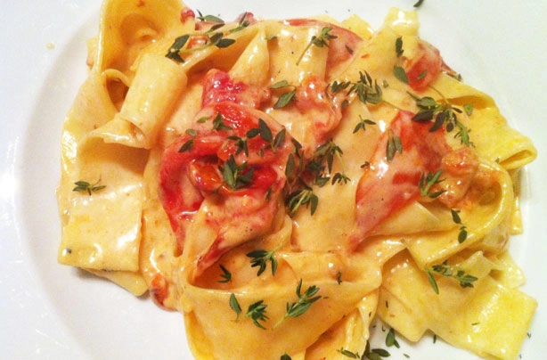 - Transfer the pasta to the sauce and mix thoroughly, then add the oven-dried tomatoes. Serve sprinkled with thyme leaves.