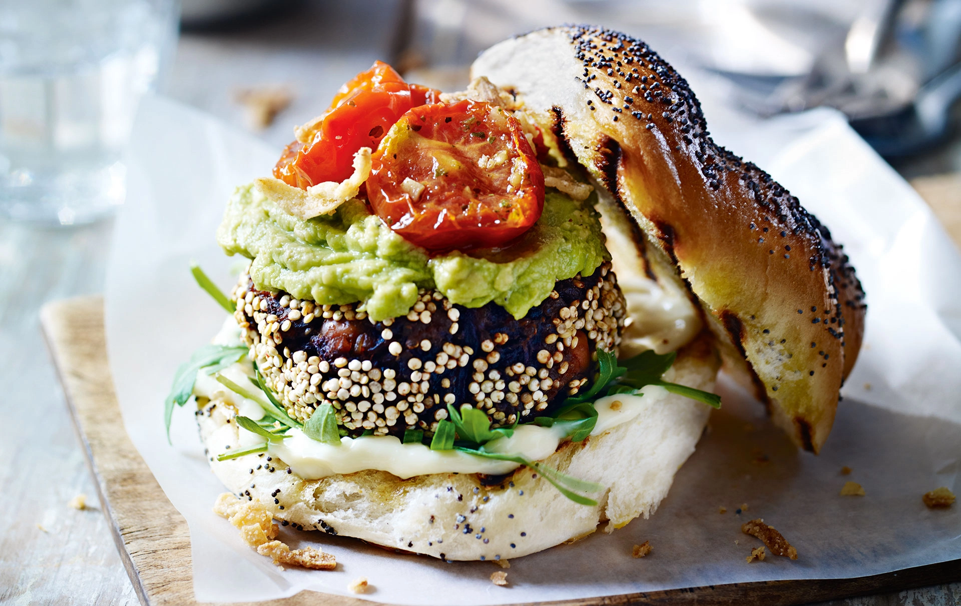 If you're on a vegan diet you're going to love these quick and easy vegan burgers. Made with beetroot, sweet potato, mixed grains and quinoa, these burgers are filling and healthy all in one. Sandwich your homemade burgers in poppyseed buns and garnish with avocado and rocket. You could even serve them with homemade chips. This recipe makes 6 burgers and takes about 30 mins in total